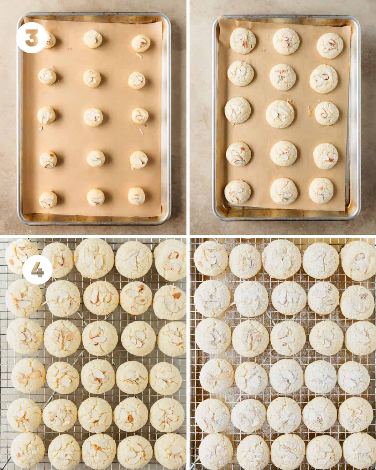 - Cool the almond meal cookies on the baking sheet until completely cooled. Then transfer to a cooling rack, dust with powdered sugar and enjoy.