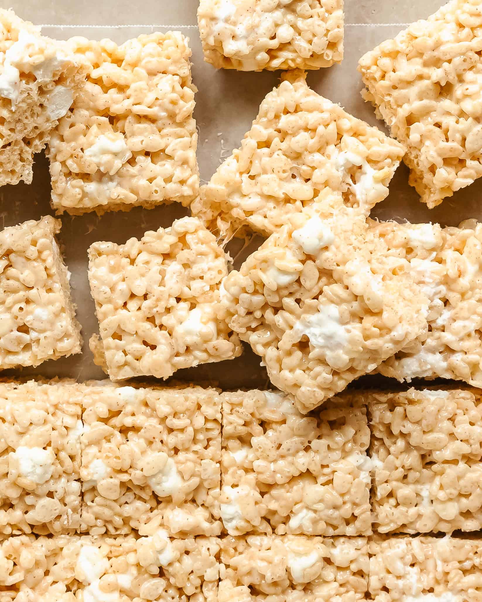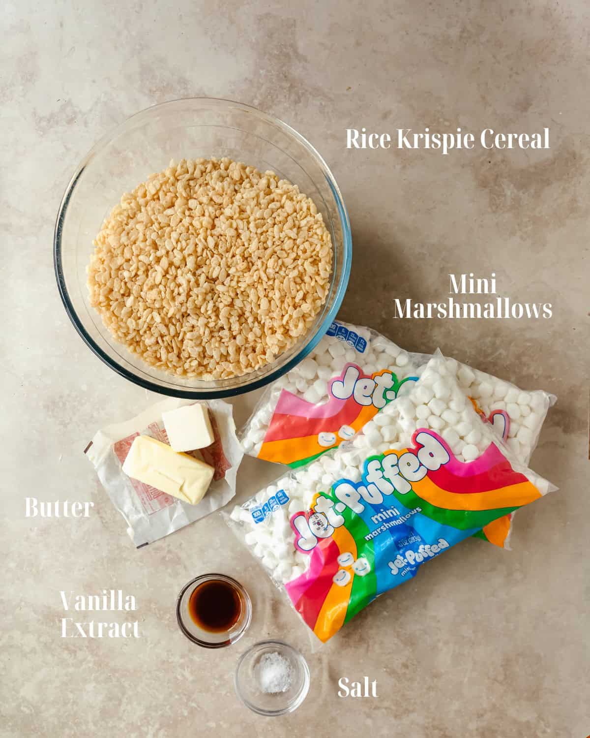 - Mini Marshmallows: This recipe for brown butter crispy treats uses (2) 10 oz. bags of mini marshmallows. Feel free to use regular marshmallows if needed, but mini ones are recommended for the best brown butter rice krispie treats.