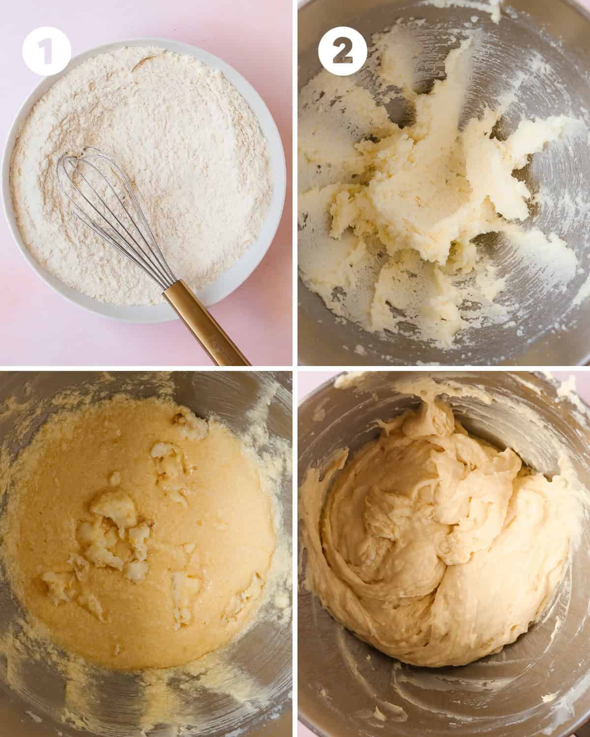 - In a large mixing bowl fitted with paddle attachment, cream together the butter and sugar on medium speed for 3 -4 minutes. Scrape down the sides and bottom of the bowl. With the mixer on low, cream in the eggs and vanilla extract until well combined. Scrape the bottom and sides of the mixing bowl. Finally, with the mixer on low, alternate mixing the dry ingredients and buttermilk into the wet ingredients in this order: dry, buttermilk, dry, buttermilk, dry.1 cup (200 g) granulated sugar, 1 zest from a large lemon, ½ cup (113 g) unsalted butter, softened , 2 large eggs, room temperature, 2 teaspoons (10 ml) vanilla extract , 1 cup (240 ml) buttermilk, room temperature
