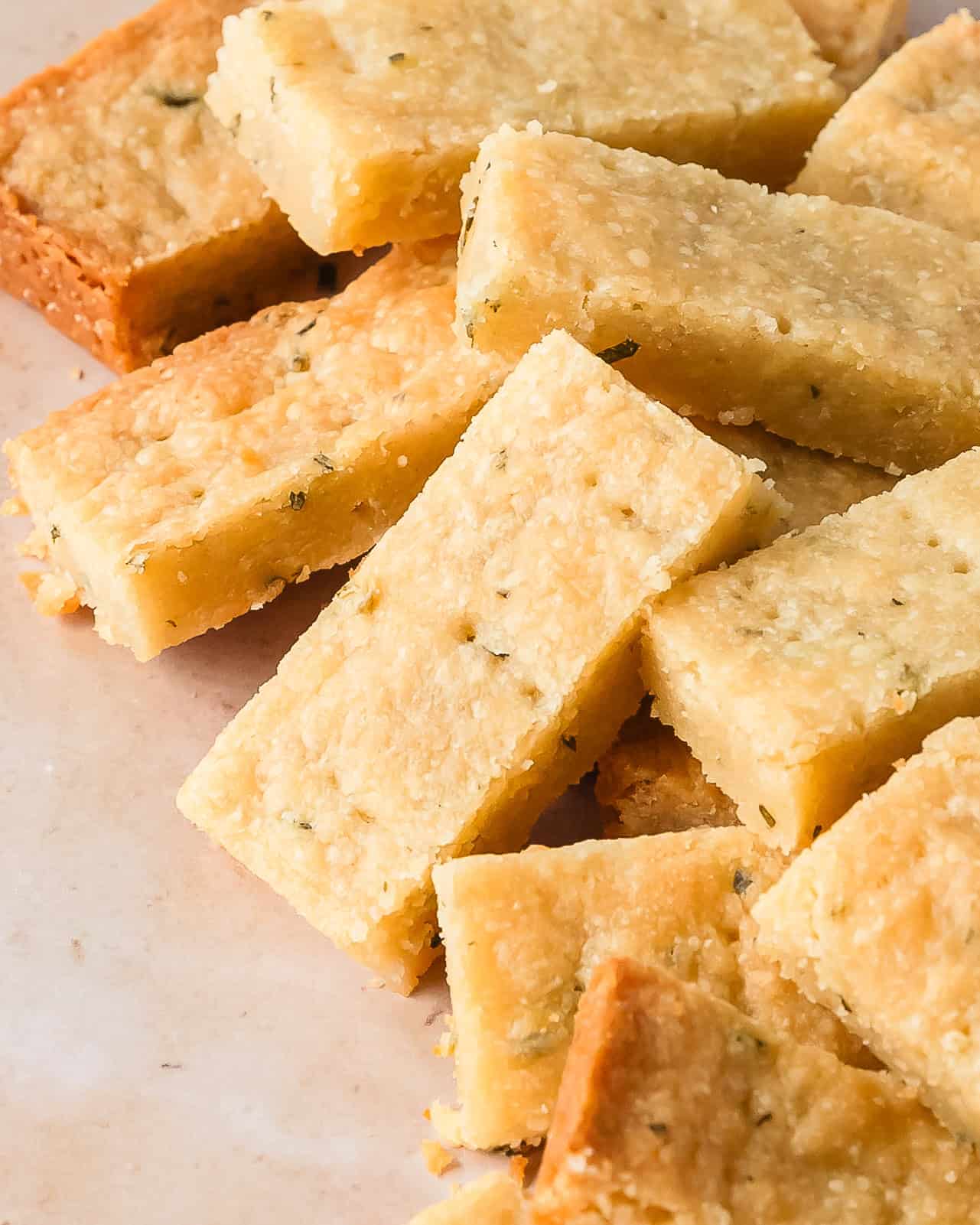 Rosemary shortbread cookies are thick, soft and buttery shortbread cookies made with fresh woodsy rosemary. This sweet and salty rosemary shortbread is easy to make and is the perfect festive and unexpected cookie for the holidays.